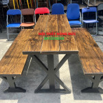 *Bộ bàn ghế quán nhậu gỗ tự nhiên kết hợp chân sắt sơn tĩnh điện cực kỳ chắc chắn, thiết kế dài rộng phù hợp mô hình quán nhậu bình dân, quán hải sản, quán ốc, beer club.
