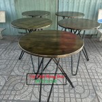 - Bàn tròn mặt gỗ cao sau sơn giả cổ đk 60cm cao 75cm + chân sắt ống sơn tĩnh điện