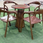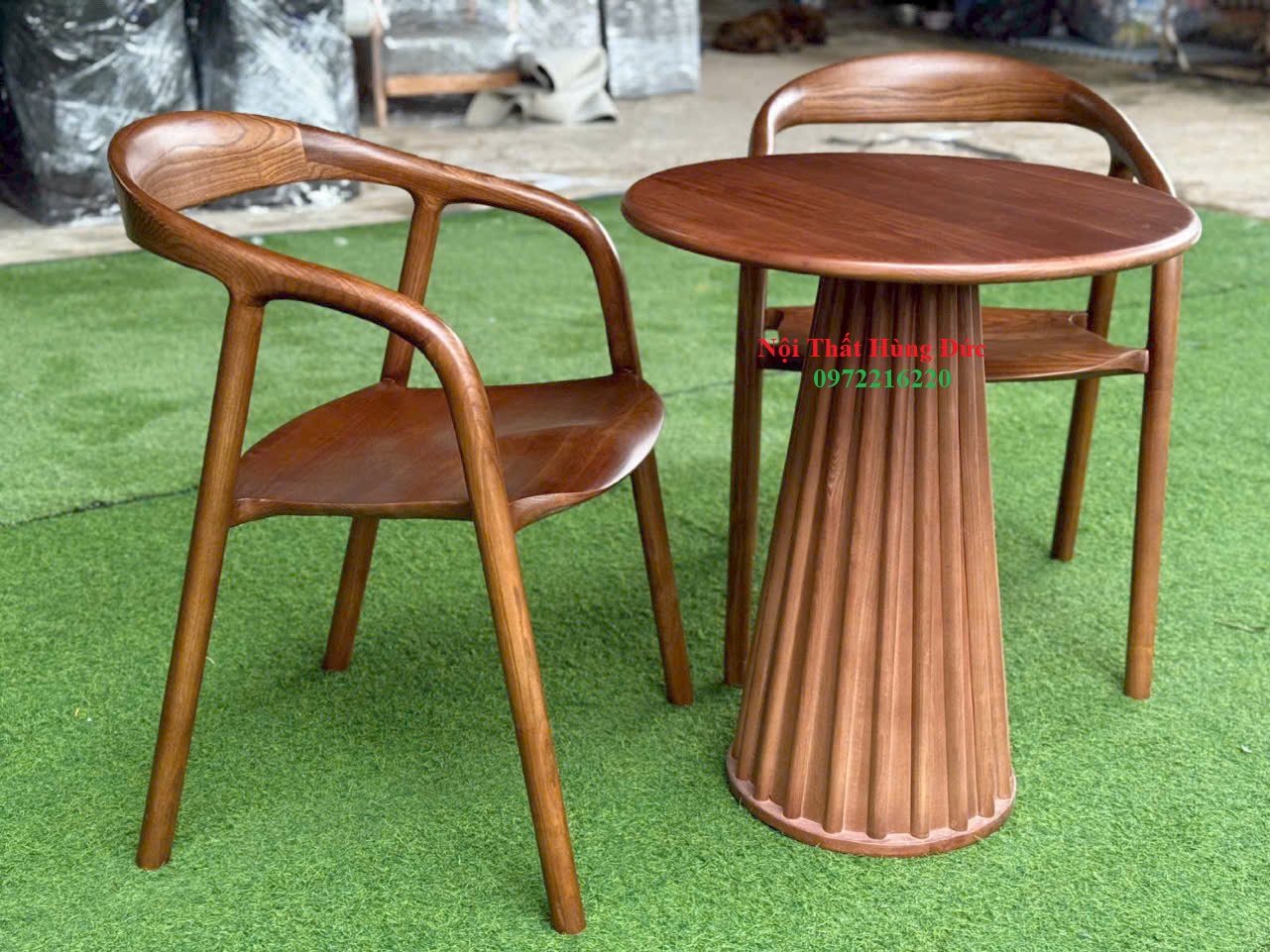 Thiết kế: Ghế bo tròn ôm lưng, bàn tròn chân trụ vững chắc.