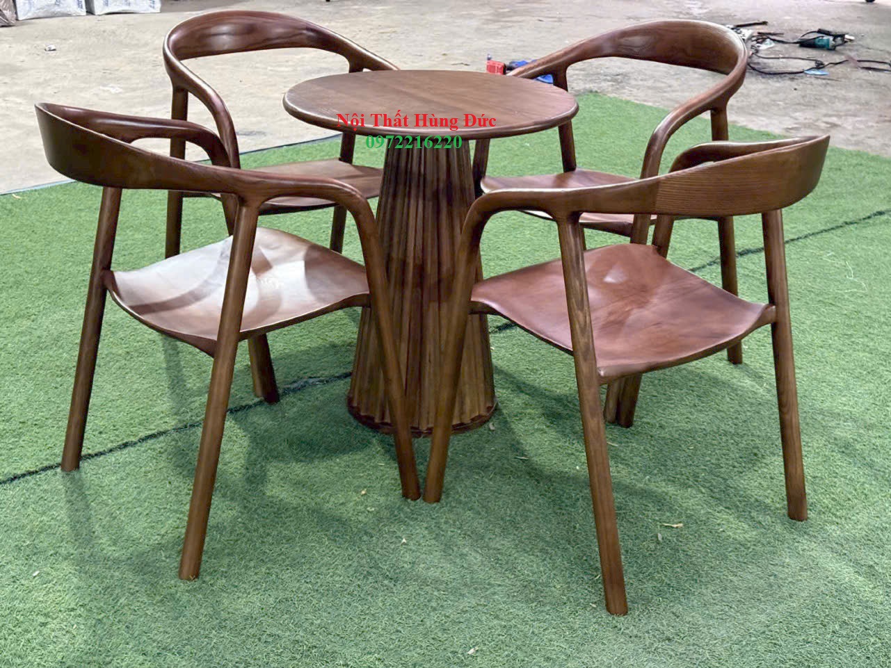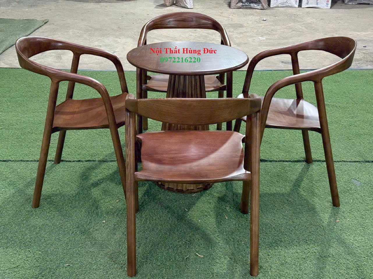 Bộ bàn ghế gỗ cao cấp gồm 1 bàn tròn và 4 ghế tựa lưng cong, được gia công hoàn toàn từ gỗ tự nhiên. Thiết kế tinh tế, uốn cong mềm mại tạo cảm giác thoải mái khi ngồi và tôn lên vẻ đẹp sang trọng cho không gian.