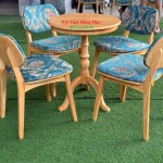 Bộ bàn ghế cafe gỗ tự nhiên bọc nệm hoa sang trọng, êm ái – Phù hợp quán cafe, nhà hàng, phòng khách, phong cách cổ điển tinh tế và bền đẹp.