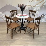 Bộ bàn ghế cafe gồm 1 bàn tròn mặt đá trắng kết hợp chân sắt đúc đen chắc chắn và 4 ghế gỗ tự nhiên với thiết kế cổ điển. Sản phẩm mang lại không gian sang trọng, ấm cúng, phù hợp sử dụng cho quán cafe, trà sữa, nhà hàng hoặc không gian gia đình.