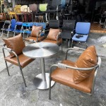 BỘ BÀN GHẾ CAFE KHUNG SẮT – NỆM DA CAO CẤP | PHONG CÁCH HIỆN ĐẠI SANG TRỌNG