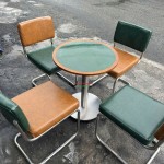 Bộ bàn ghế cafe tròn 4 ghế nệm da công nghiệp – hiện đại & bền đẹp