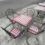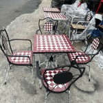 Bộ bàn ghế mosaic đỏ trắng ngoài trời