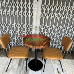 Bàn chân sắt đế tròn sơn tĩnh điện + mặt me tây tròn nguyên khối dầy 5cm, đường kính 60cm cao 75cm