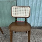 Ghế gỗ cafe tựa đan mây